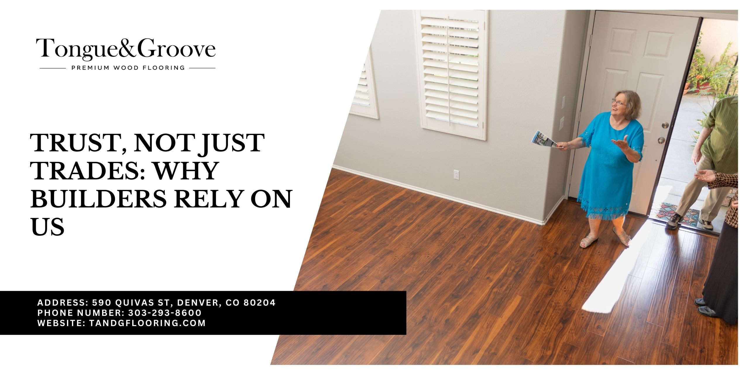 In today’s competitive construction landscape, builders quality wood flooring and a trade partner who protects their brand and simplifies project coordination. At Tongue & Groove, Denver’s premier hardwood expert since 2007, we offer unmatched craftsmanship, scheduling reliability, and brand protection. Let’s discuss why builders count on us.